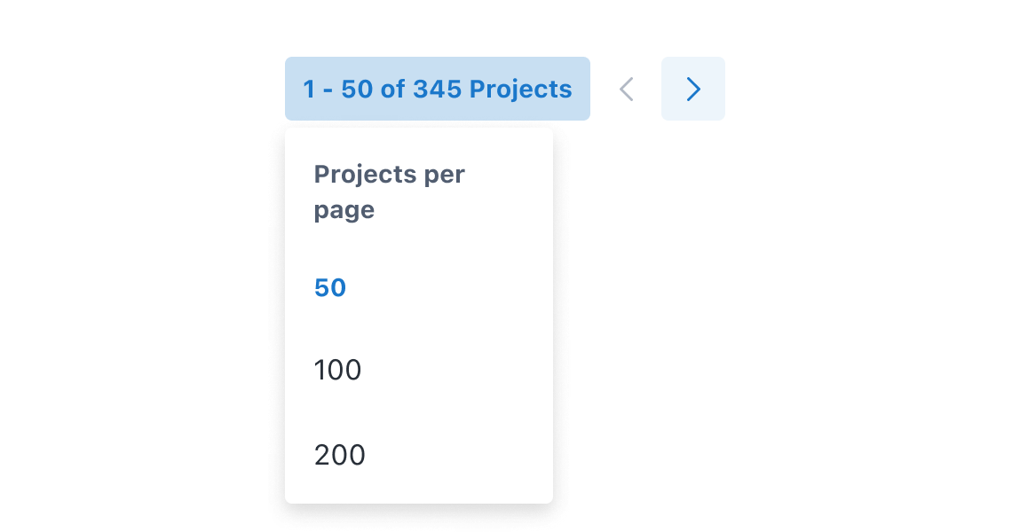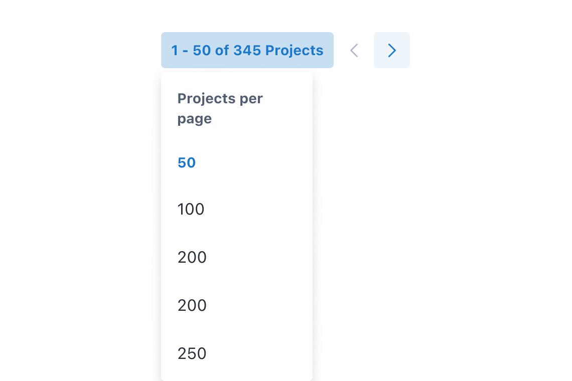 Use clear and simple increments for page sizes. Fewer options are easier for users to understand and select from.
